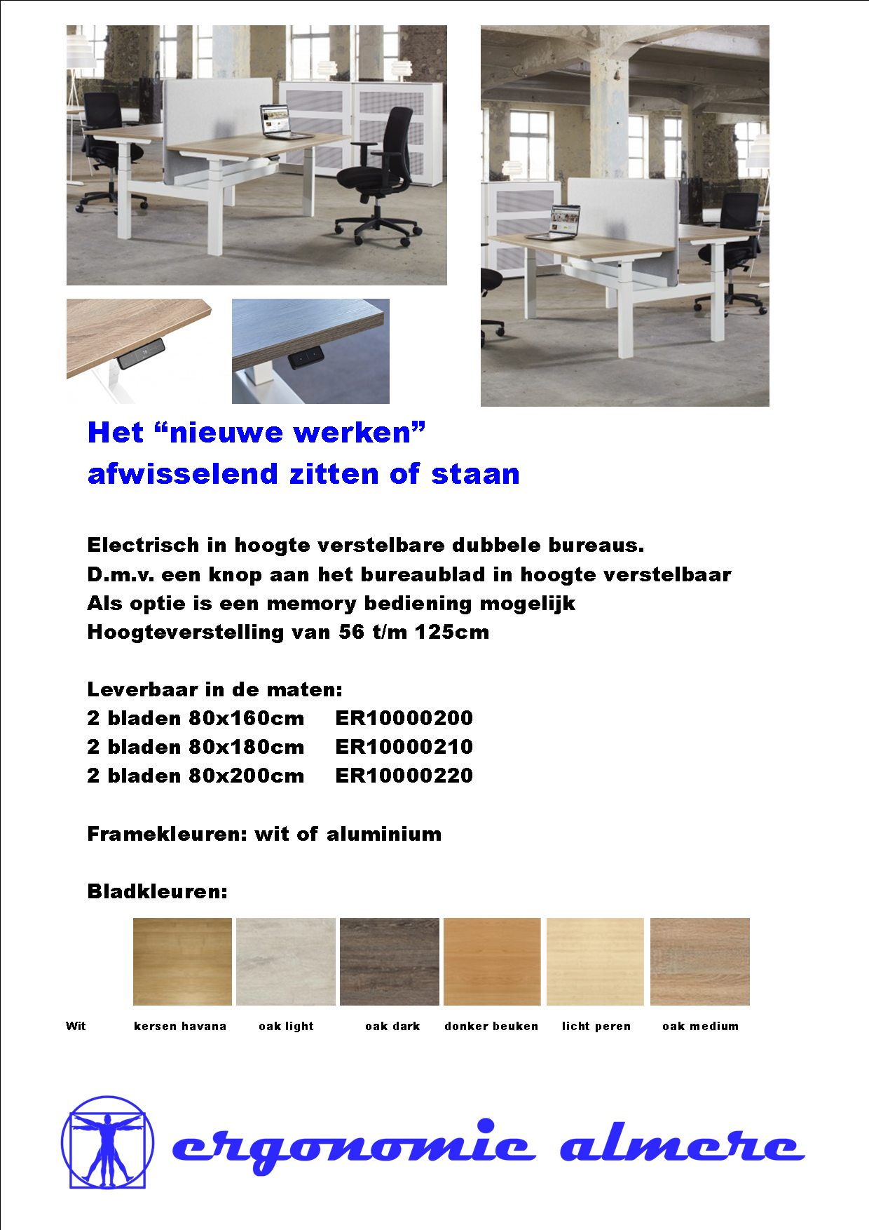 Bureau dubbel 80x180cm electrisch in hoogte verstelbaar